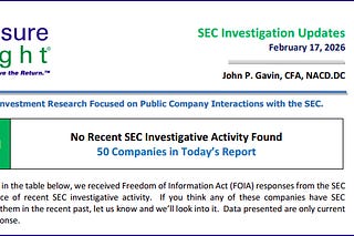 Updates on SEC investigative activity - Nine (9) companies in today’s report.