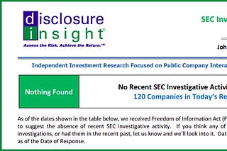 59 U.S. Companies with Confirmed, Undisclosed SEC Investigations