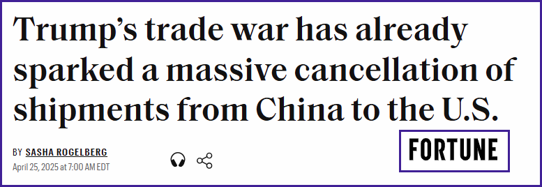 Uncertainty over tariffs has caused businesses to dramatically reduce or stop ordering products from overseas. In the unlikely event the president fully reverses his ill-advised posture on tariffs, one expert recently told Fortune it would take two months for supply chains to be restored from here. Others have said much longer, depending on the products and factories that produce them.