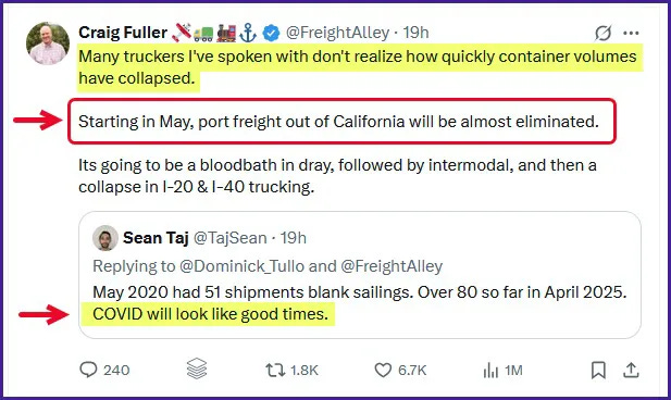 Sure, markets continue to cheer every morsel of “tariff hopeium” from the White House – those recurring, always-optimistic promises of trade breakthroughs. But logistics experts, industry leaders, and supply chain pros have been sounding the alarm for weeks. Their message is consistent, well supported by easily observable data, and has grown more urgent: We’re facing supply chain disruptions on a scale not seen since the pandemic – and likely worse.