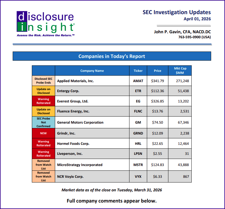 SEC Investigation Updates: April 01, 2026