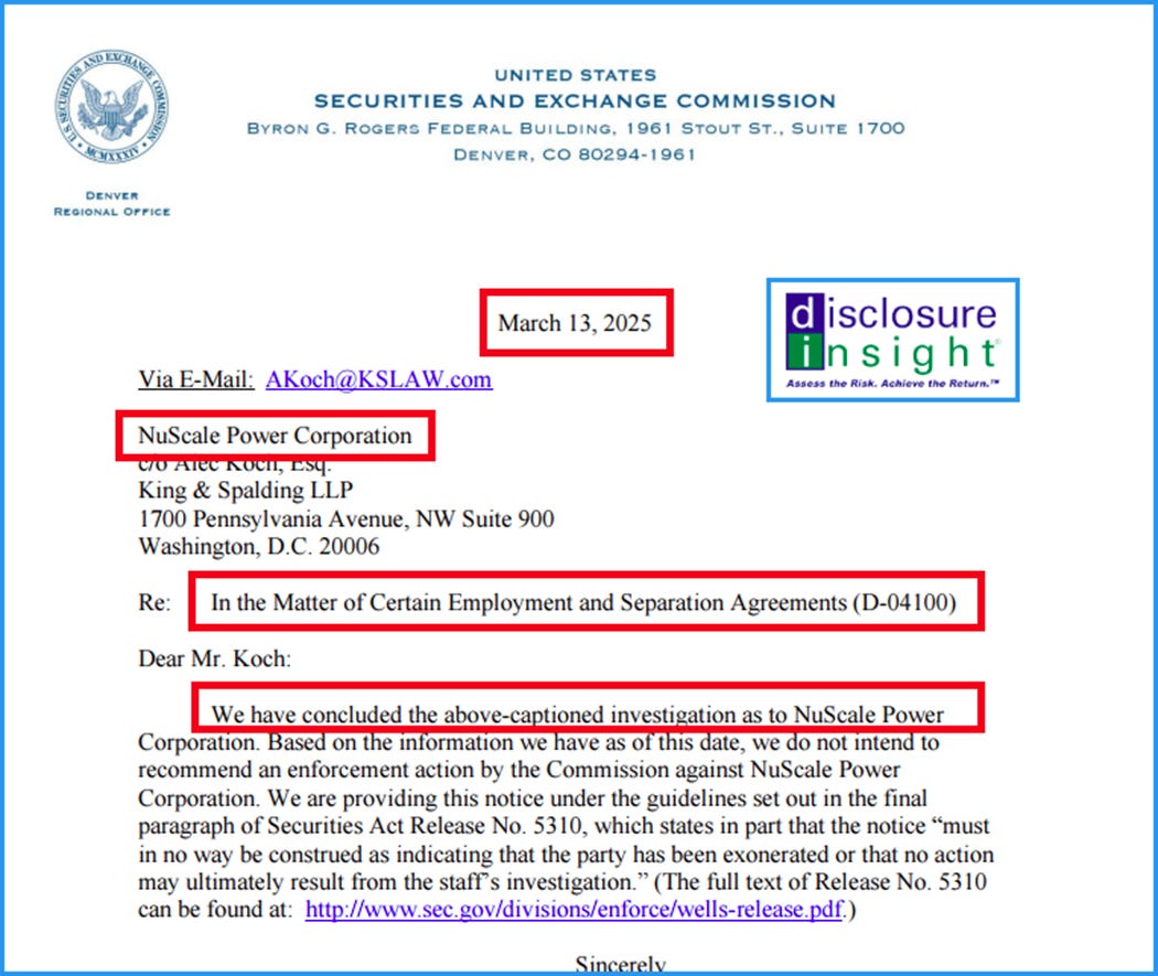As can be seen below, NuScale’s involvement in this investigation ended in Mar-2025.