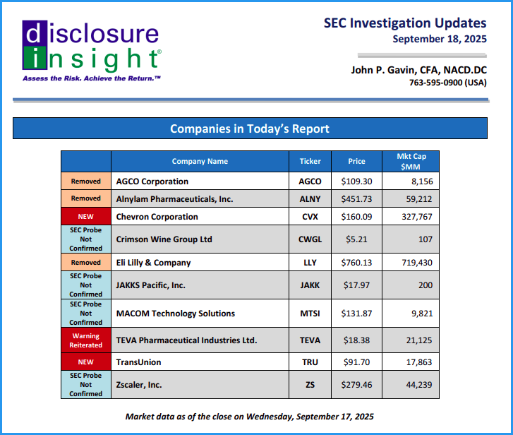 SEC Investigation Updates: September 18, 2025